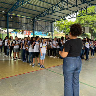Uma das atividades em destaque foi a oficina “Worklab: Mundo do Trabalho”, conduzida pelo educador Ruan Almeida e pela pedagoga Alessandra Barros. Os alunos aprenderam sobre competências profissionais e receberam dicas práticas de como montar um currículo.